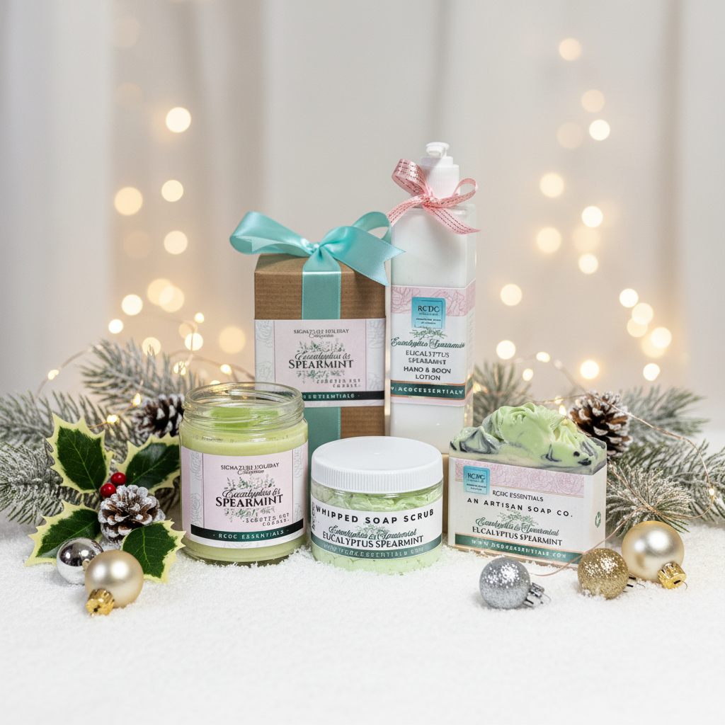 Bring a breath of fresh winter air into your season with this cooling and comforting Eucalyptus & Spearmint Gift Set. Crisp herbal notes meet cozy self care essentials, making this set a perfect balance of refreshing and soothing during the busy holiday months.