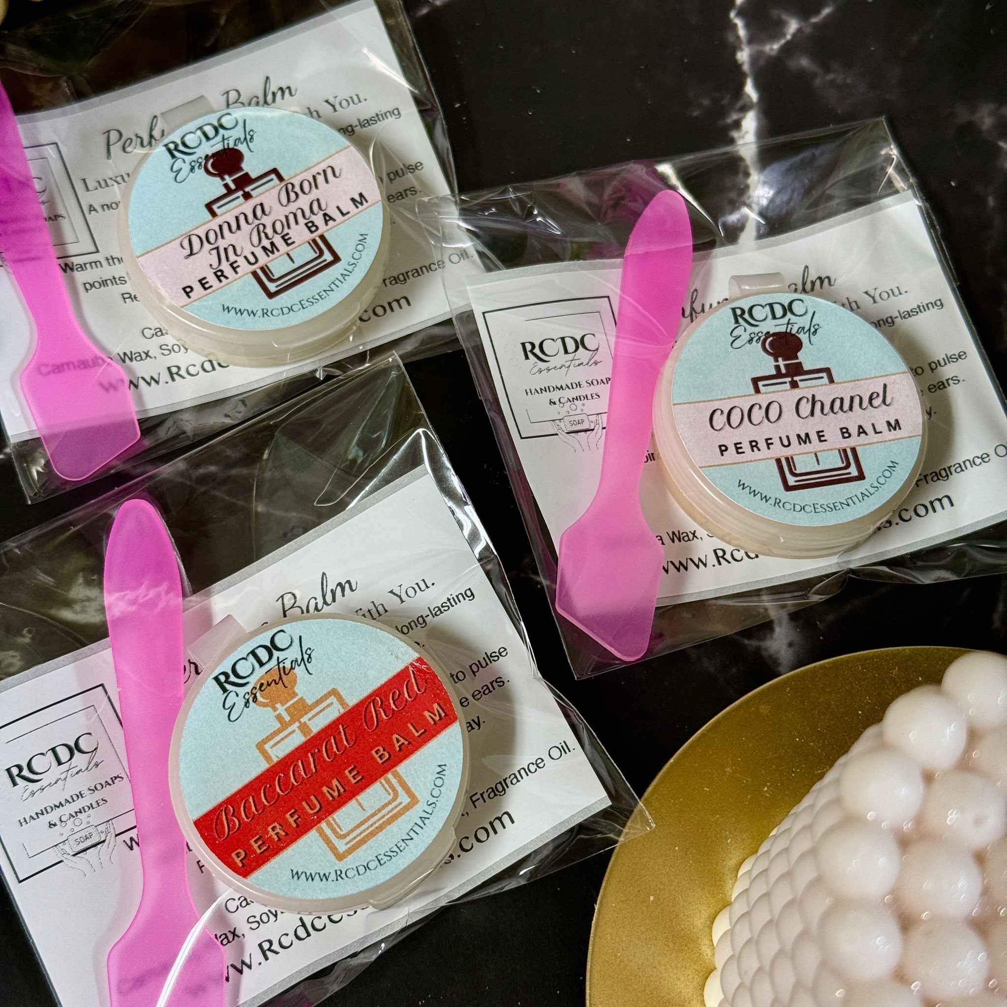 Our Perfume Balm is a solid, skin-loving fragrance made for life on the go. Crafted with a nourishing blend of castor oil, olive oil, and natural waxes, this portable balm glides smoothly onto pulse points, leaving behind a soft veil of long-lasting scent.