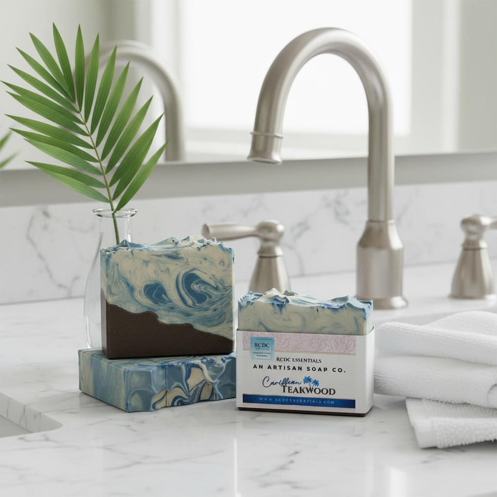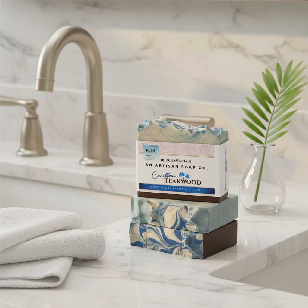 Jabón en barra de leche de cabra elaborado a mano con proceso en frío de madera de teca caribeña (para él)